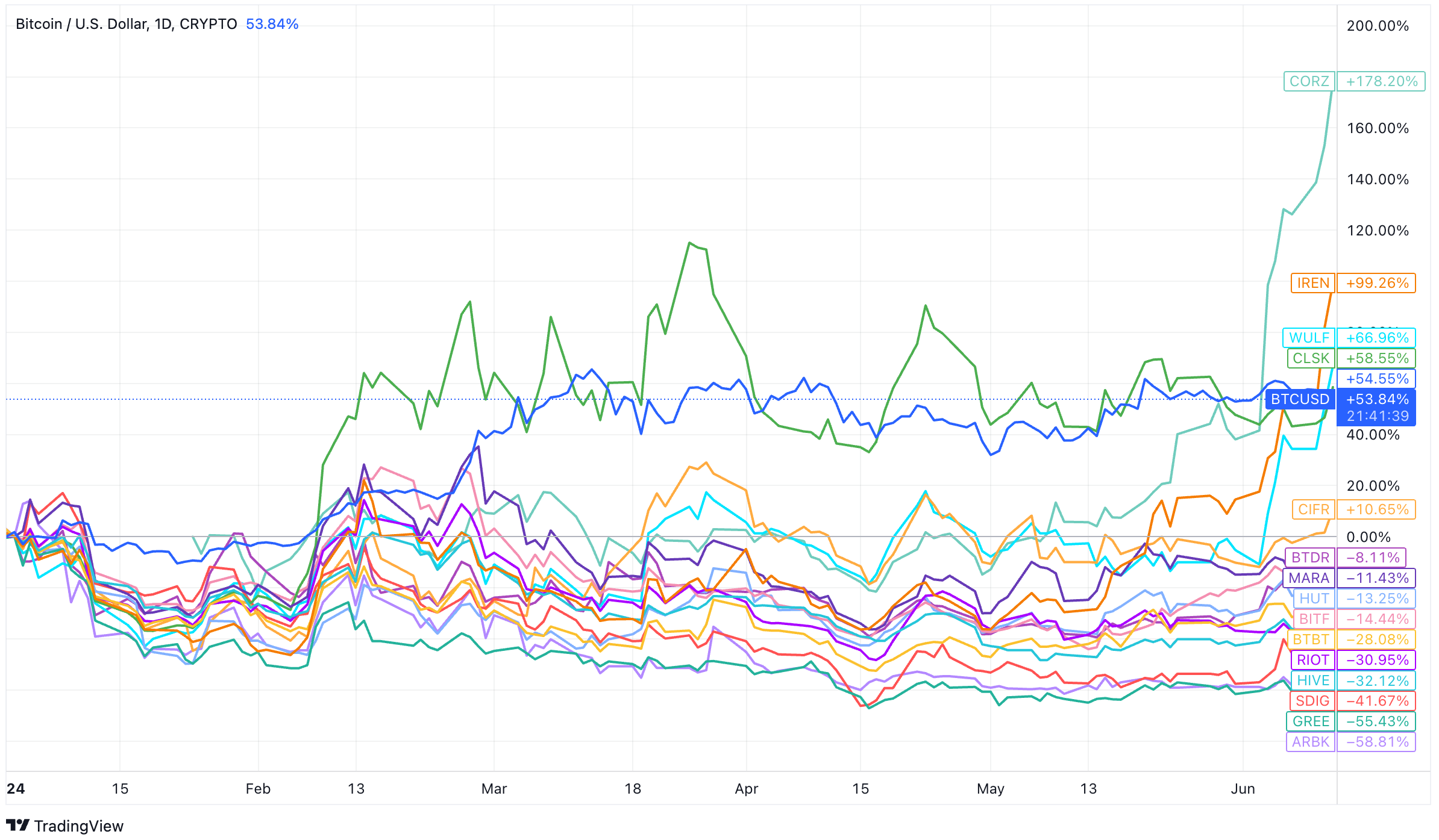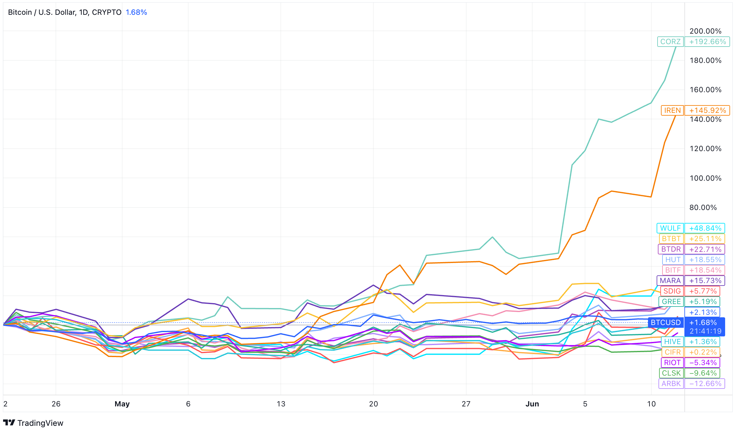 Although year-to-date, only a handful of mining stocks managed to outperform bitcoin, many of them have been seriously playing catch up since late April.