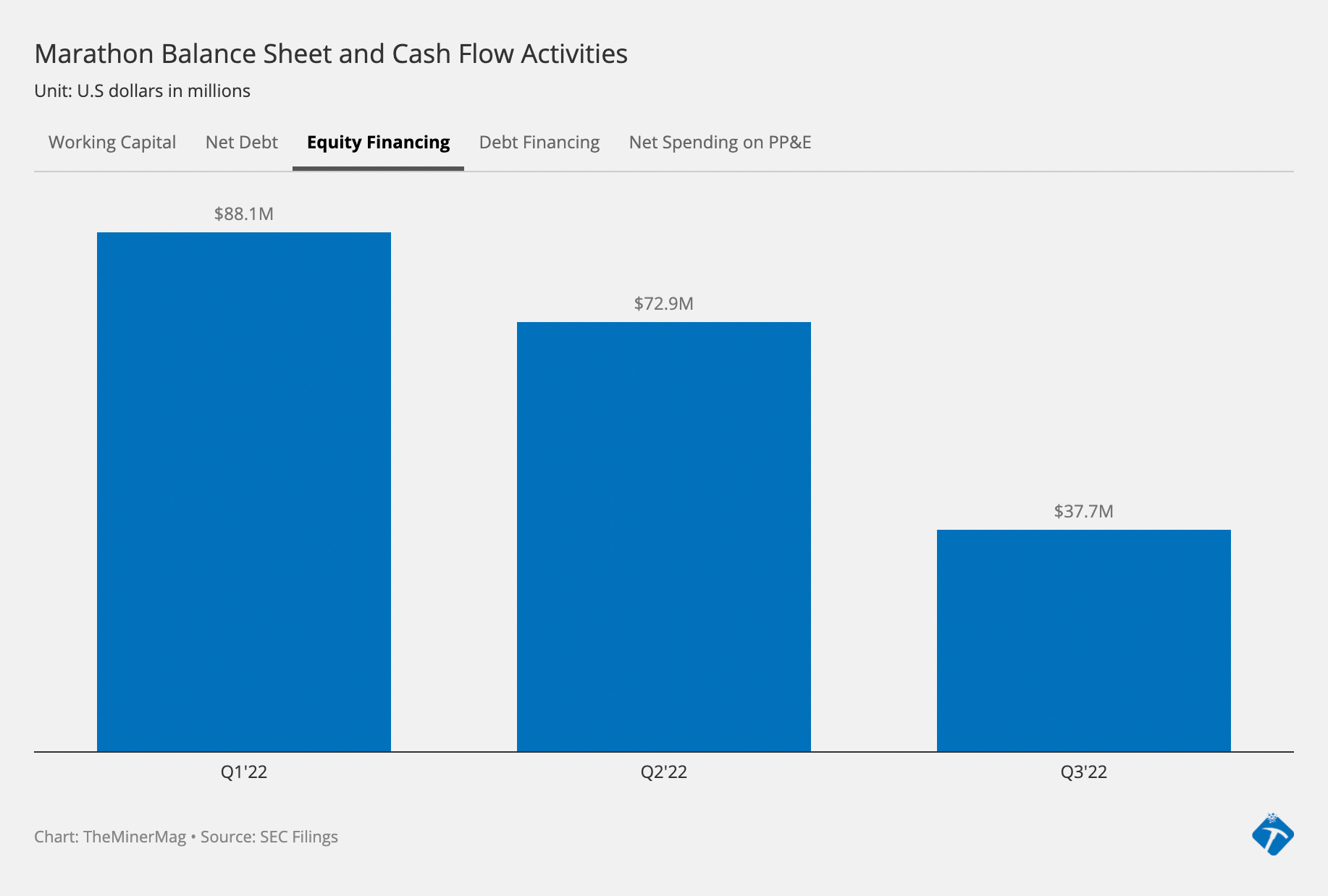 For the first nine months of 2022, Mara raised $200 million from issuing stocks and $50 million from a term loan with Silvergate. It closed Q3’22 with $55 million unrestricted cash in hand after incurring ~$20 million in cash expenses in the quarter to cover recurring costs related to mining, payroll and financial interest.